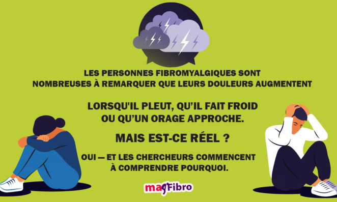 Introduction Les personnes fibromyalgiques sont nombreuses à remarquer que leurs douleurs augmentent lorsqu’il pleut, qu’il fait froid ou qu’un orage approche. Mais est-ce réel ?